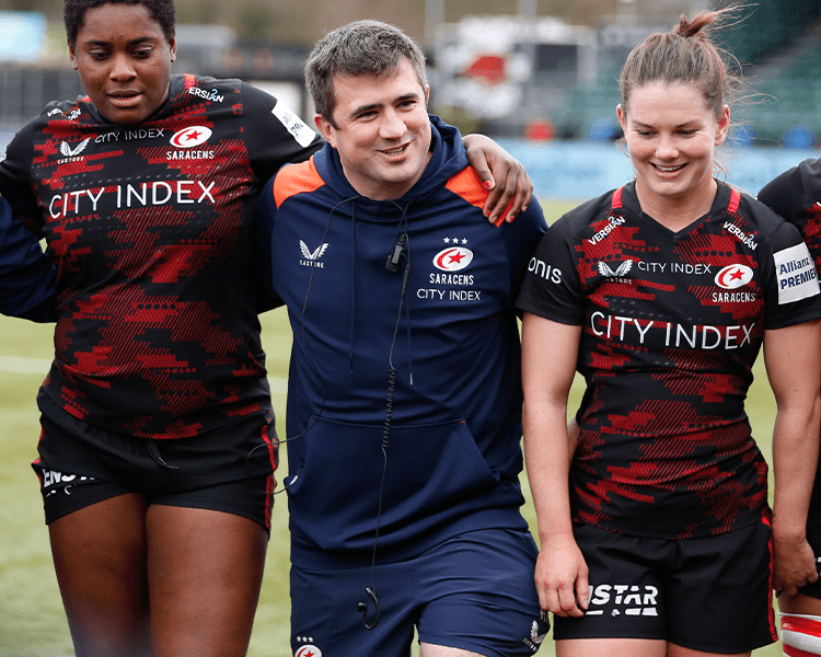 Managing returning players is a challenge for a head coach. Some players may return in form, others under par. Some internationals will be buoyed by successful campaigns, others may have suffered heavy losses or not have featured as much as they hoped. From the end of the Guinness Women’s 6 Nations to the ongoing PAC4 Series, Alex Austerberry works hard to help his Saracens players when they walk back through the club door.